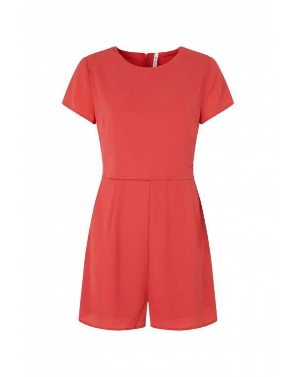 Brand: Pepe Jeans Gender: Women Type: Jumpsuits Season: Spring/Summer PRODUCT DETAIL • Color: coral • Pattern: plain • Fastening: with zip • Sleeves: short • Neckline: round neck COMPOSITION AND MATERIAL • Composition: -3% elastane -97% polyester • Washing: machine wash at 30°