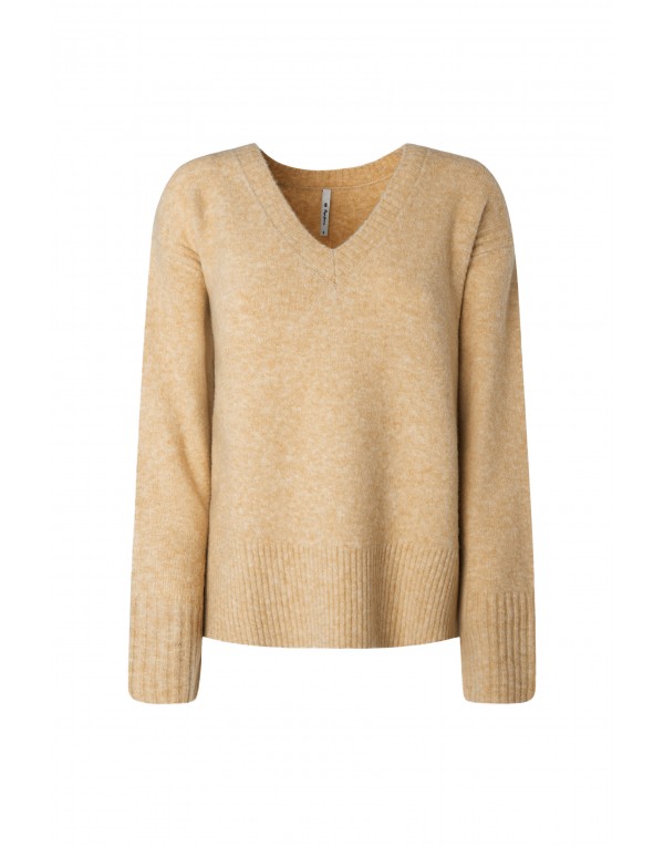 Brand: Pepe Jeans Gender: Women Type: Knitwear Season: Fall/Winter PRODUCT DETAIL • Color: beige • Pattern: plain • Sleeves: long • Neckline: v-neck COMPOSITION AND MATERIAL • Composition: -60% acrylic -8% wool -2% lycra -30% nylon • Washing: handwash