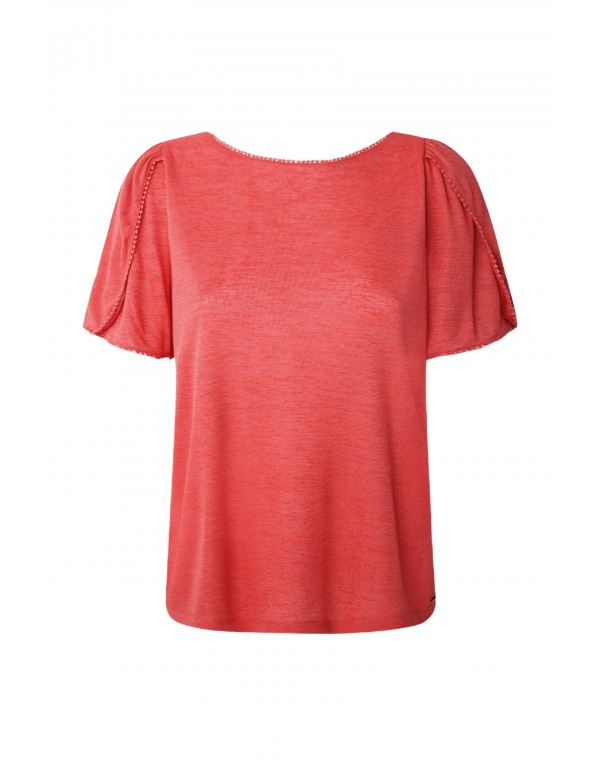 Brand: Pepe Jeans Gender: Women Type: T-shirts Season: Spring/Summer PRODUCT DETAIL • Color: coral • Pattern: plain • Sleeves: short • Neckline: round neck COMPOSITION AND MATERIAL • Composition: -38% polyester -62% viscose • Washing: machine wash at 30°