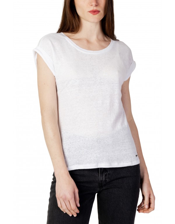 Brand: Pepe Jeans Gender: Women Type: T-shirts Season: Spring/Summer PRODUCT DETAIL • Color: white • Sleeves: short • Neckline: round neck COMPOSITION AND MATERIAL • Composition: -100% linen • Washing: handwash