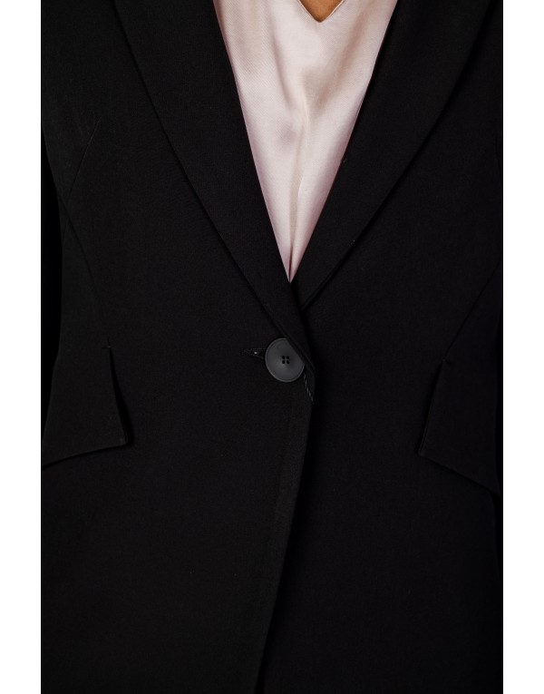 Brand: Sandro Ferrone Gender: Women Type: Blazer Season: Fall/Winter PRODUCT DETAIL • Color: black • Pattern: plain • Fastening: with button • Sleeves: long • Collar: lapel collar • Pockets: front pockets COMPOSITION AND MATERIAL • Composition: -10% lycra -90% polyester • Washing: machine wash at 30°