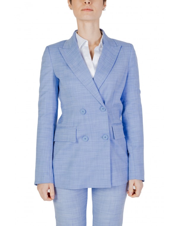 Brand: Sandro Ferrone Gender: Women Type: Blazer Season: Spring/Summer PRODUCT DETAIL • Color: light blue • Fastening: buttons • Sleeves: long • Neckline: v-neck • Collar: lapel collar COMPOSITION AND MATERIAL • Composition: -1% elastane -82% polyester -17% viscose • Washing: handwash