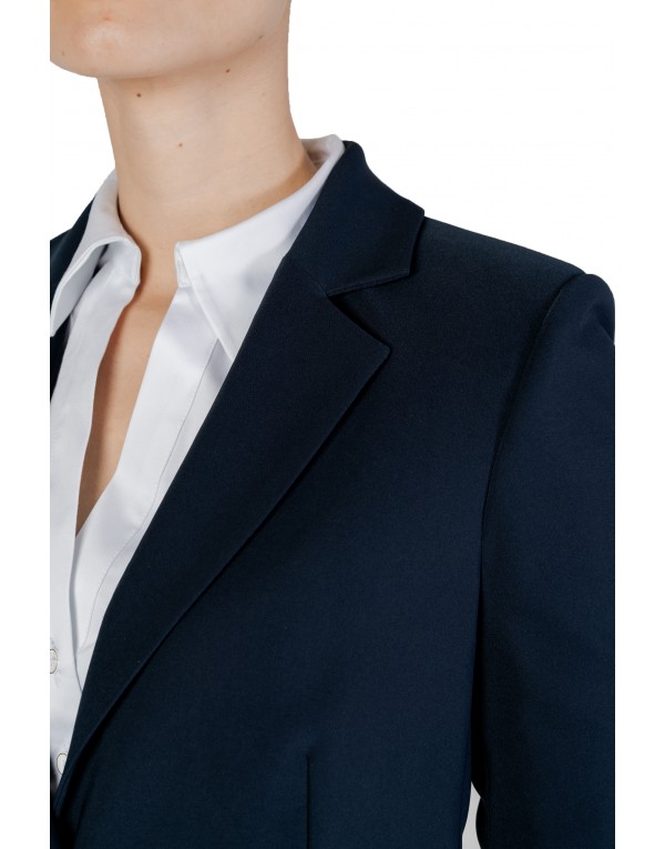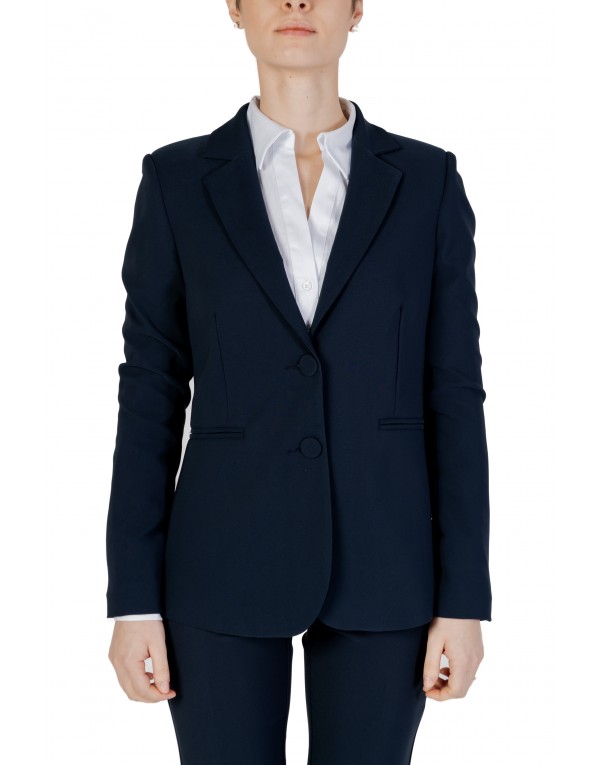 Brand: Sandro Ferrone Gender: Women Type: Blazer Season: Spring/Summer PRODUCT DETAIL • Color: blue • Fastening: buttons • Sleeves: long • Neckline: low-cut v-neck • Collar: lapel collar COMPOSITION AND MATERIAL • Composition: -90% polyester -10% spandex • Washing: machine wash at 30°