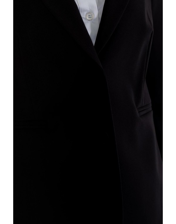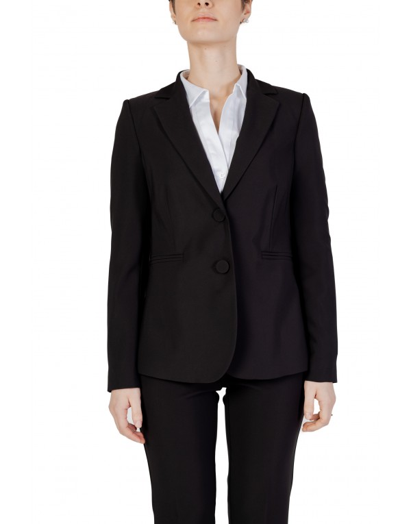 Brand: Sandro Ferrone Gender: Women Type: Blazer Season: Spring/Summer PRODUCT DETAIL • Color: black • Fastening: buttons • Sleeves: long • Neckline: low-cut v-neck • Collar: lapel collar COMPOSITION AND MATERIAL • Composition: -90% polyester -10% spandex • Washing: machine wash at 30°