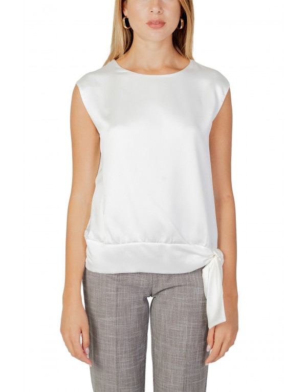 Brand: Sandro Ferrone Gender: Women Type: Blouse Season: Fall/Winter PRODUCT DETAIL • Color: white • Pattern: plain • Fastening: slip on • Sleeves: sleeveless • Neckline: round neck COMPOSITION AND MATERIAL • Composition: -100% polyester • Washing: machine wash at 30°