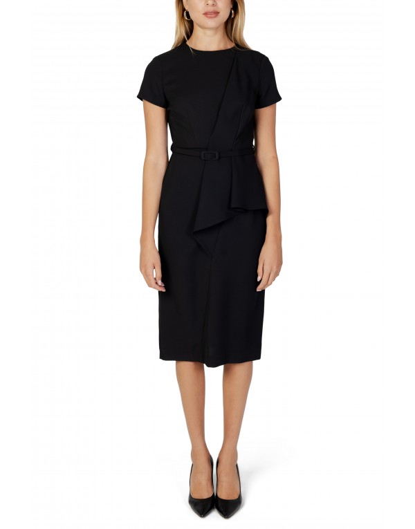 Brand: Sandro Ferrone Gender: Women Type: Dresses Season: Fall/Winter PRODUCT DETAIL • Color: black • Pattern: plain • Fastening: with zip • Sleeves: short • Neckline: round neck COMPOSITION AND MATERIAL • Composition: -7% lycra -93% polyester • Washing: machine wash at 30°