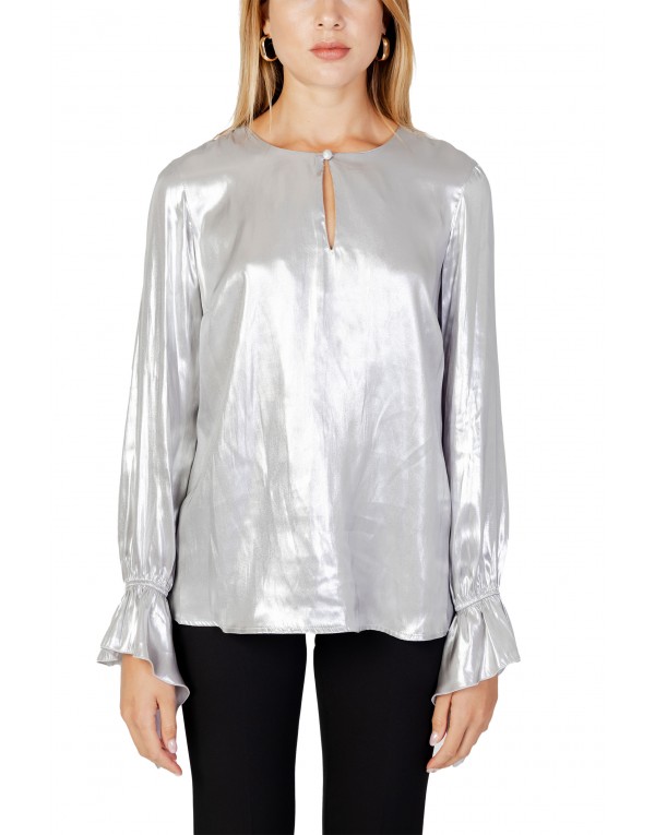 Brand: Sandro Ferrone Gender: Women Type: Knitwear Season: Fall/Winter PRODUCT DETAIL • Color: silver • Pattern: plain • Fastening: with clip COMPOSITION AND MATERIAL • Composition: -100% polyester • Washing: machine wash at 30°