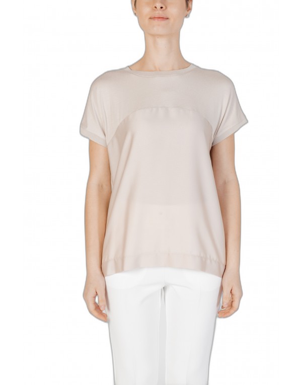 Brand: Sandro Ferrone Gender: Women Type: T-shirts Season: Spring/Summer PRODUCT DETAIL • Color: beige • Sleeves: short • Neckline: round neck COMPOSITION AND MATERIAL • Composition: -4% elastane -96% viscose • Washing: machine wash at 30°