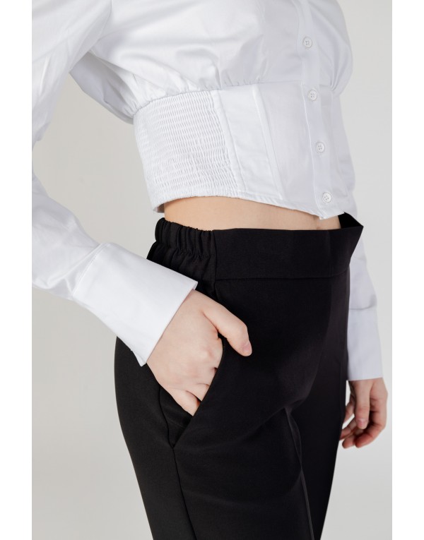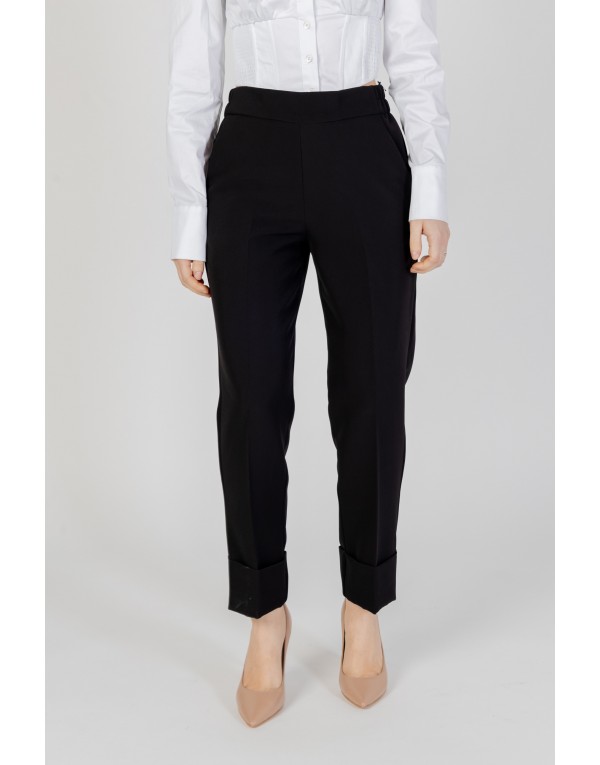 Brand: Sandro Ferrone Gender: Women Type: Trousers Season: Spring/Summer PRODUCT DETAIL • Color: black • Pockets: side pockets • Details: -elasticated waist COMPOSITION AND MATERIAL • Composition: -11% elastane -89% polyester • Washing: machine wash at 30°
