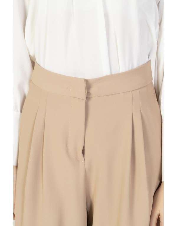 Brand: Sandro Ferrone Gender: Women Type: Trousers Season: Spring/Summer PRODUCT DETAIL • Color: beige • Fastening: zip and hook button • Pockets: side pockets COMPOSITION AND MATERIAL • Composition: -4% elastane -96% polyester • Washing: machine wash at 30°