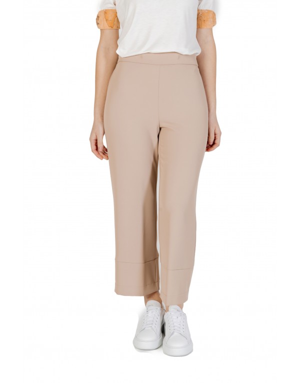 Brand: Sandro Ferrone Gender: Women Type: Trousers Season: Spring/Summer PRODUCT DETAIL • Color: beige • Fastening: with zip • Details: -elasticated waist COMPOSITION AND MATERIAL • Composition: -4% elastane -96% polyester • Washing: machine wash at 30°