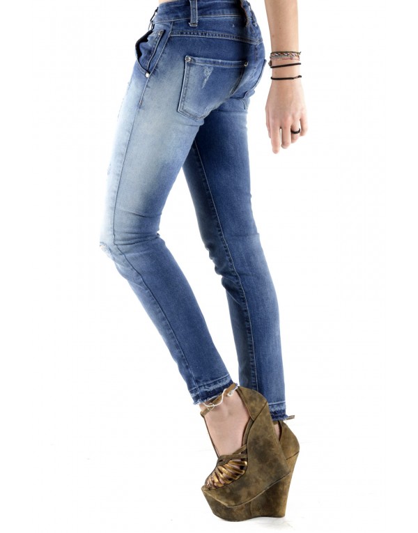 Brand: Sexy Woman Gender: Women Type: Jeans Season: All seasons PRODUCT DETAIL • Color: blue • Fastening: zip and button • Pockets: front and back pockets • Details: -ripped effect COMPOSITION AND MATERIAL • Composition: -97% cotton -3% elastane • Washing: machine wash at 30°