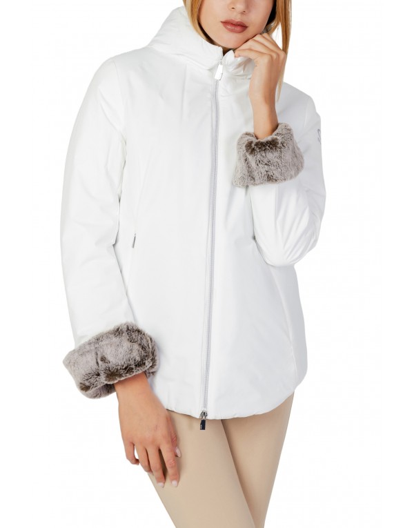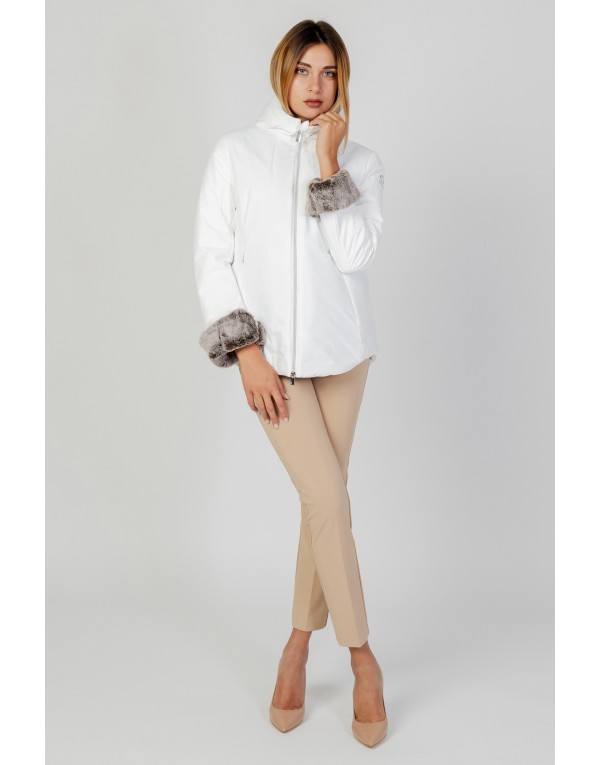 Brand: Suns Gender: Women Type: Jackets Season: Fall/Winter PRODUCT DETAIL • Color: white • Fastening: with zip • Sleeves: long • Neckline: turtleneck • Collar: hood COMPOSITION AND MATERIAL • Composition: -95% polyester -5% spandex