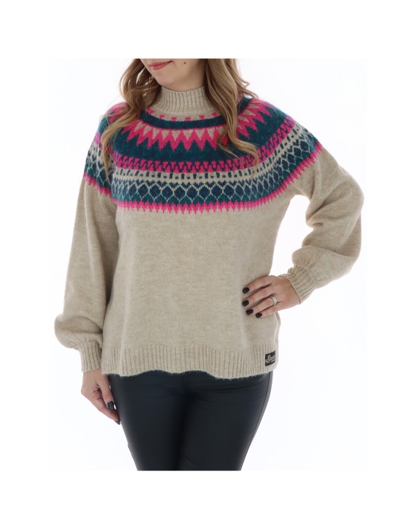 Brand: Superdry Gender: Women Type: Knitwear Season: Fall/Winter PRODUCT DETAIL • Color: beige • Pattern: coloured • Sleeves: long • Neckline: turtleneck • Article code: W6110508A COMPOSITION AND MATERIAL • Composition: -61% acrylic -23% polyamide -16% polyester • Washing: machine wash at 30°