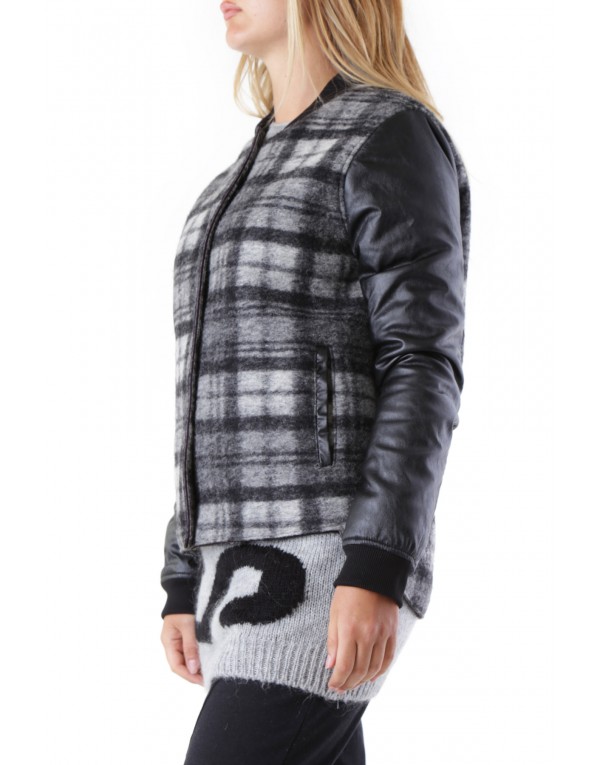 Brand: 525 Gender: Women Type: Jackets Season: Fall/Winter PRODUCT DETAIL • Color: black • Pattern: checked • Fastening: with automatic buttons • Sleeves: long • Pockets: front pockets COMPOSITION AND MATERIAL • Composition: -5% elastane -25% wool -50% polyester -20% polyurethane • Washing: dry cleaned