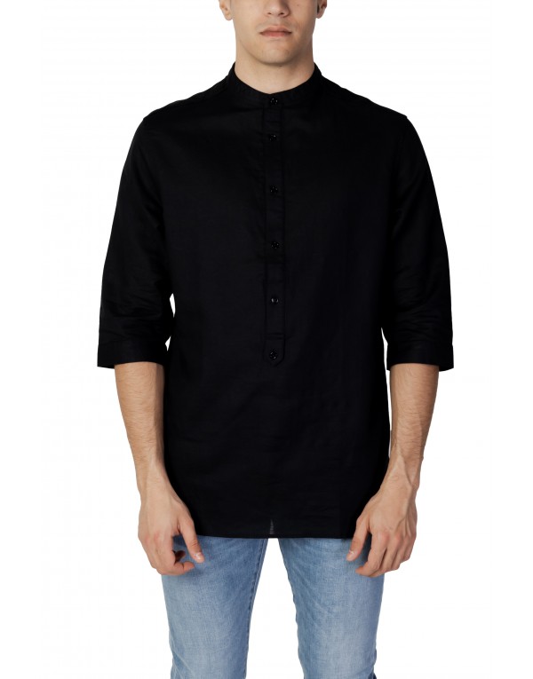 Brand: Antony Morato Gender: Men Type: Shirts Season: Spring/Summer PRODUCT DETAIL • Color: black • Pattern: plain • Fastening: buttons • Sleeves: 3/4 Sleeves • Collar: mandarin COMPOSITION AND MATERIAL • Composition: -45% cotton -55% linen • Washing: machine wash at 30°