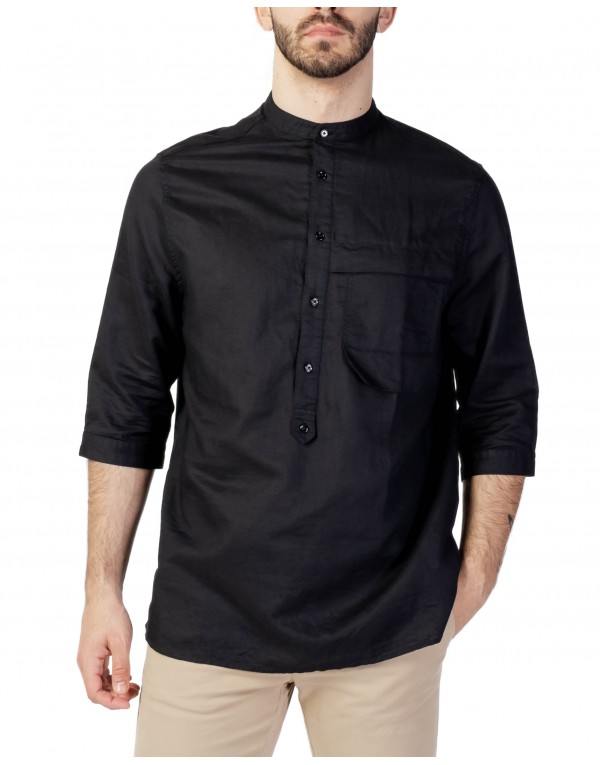 Brand: Antony Morato Gender: Men Type: Shirts Season: Spring/Summer PRODUCT DETAIL • Color: black • Pattern: plain • Fastening: buttons • Sleeves: 3/4 Sleeves • Collar: mandarin COMPOSITION AND MATERIAL • Composition: -45% cotton -55% linen • Washing: machine wash at 30°