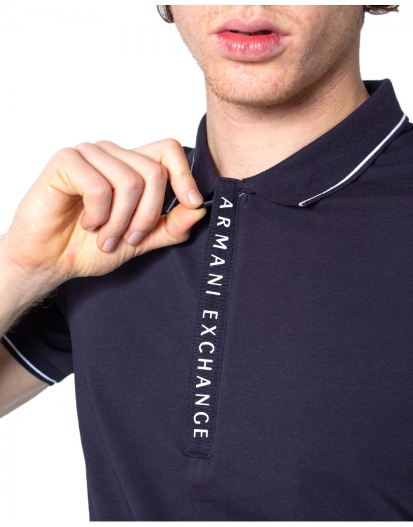 Brand: Armani Exchange Gender: Men Type: Polo Season: Spring/Summer PRODUCT DETAIL • Color: blue • Pattern: plain • Fastening: buttons • Sleeves: short COMPOSITION AND MATERIAL • Composition: -100% cotton • Washing: machine wash at 30°