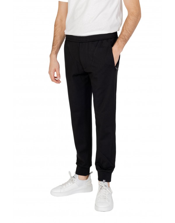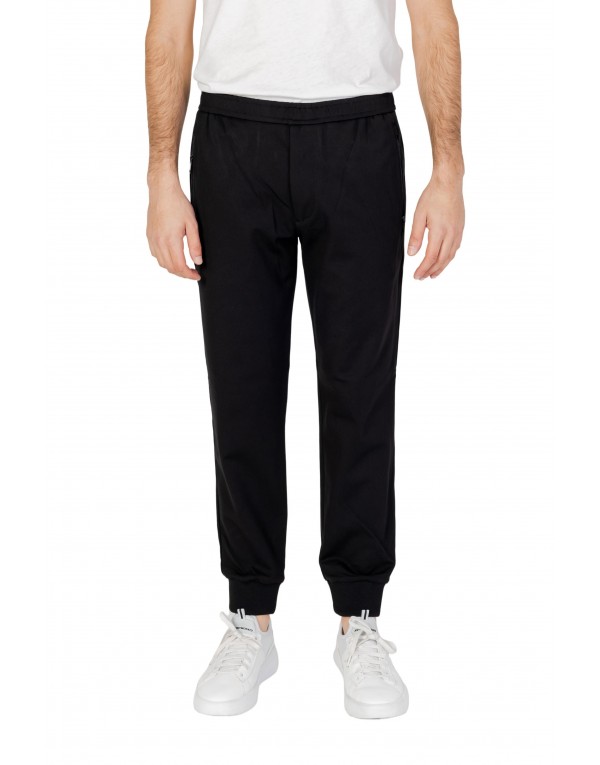 Brand: Armani Exchange Gender: Men Type: Trousers Season: Spring/Summer PRODUCT DETAIL • Color: black • Pattern: plain • Fastening: slip on • Pockets: front pockets COMPOSITION AND MATERIAL • Composition: -100% cotton -4% elastane -34% polyamide -62% viscose • Washing: machine wash at 30°