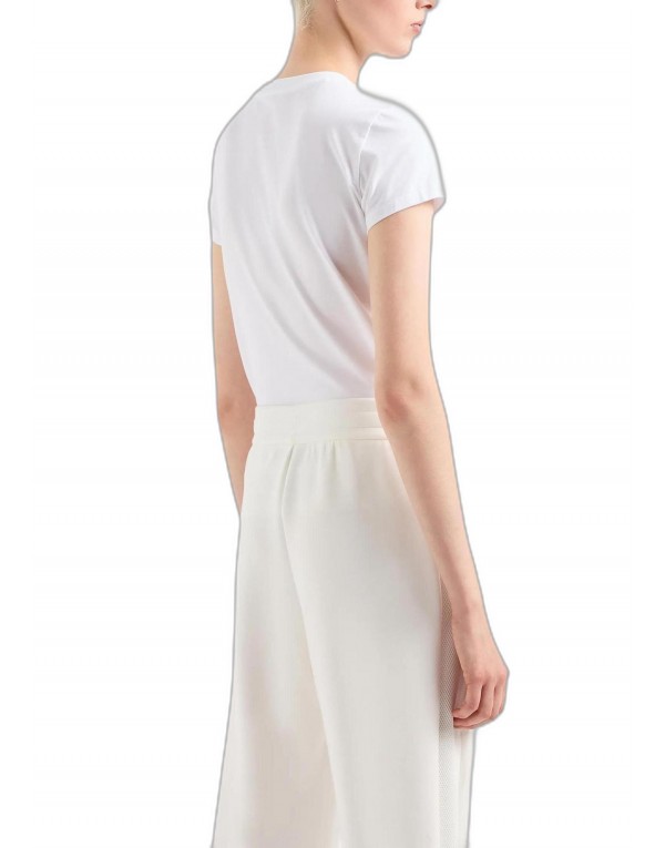 Brand: Armani Exchange Gender: Women Type: T-shirts Season: Spring/Summer PRODUCT DETAIL • Color: white • Pattern: print • Fastening: slip on • Sleeves: short • Neckline: round neck COMPOSITION AND MATERIAL • Composition: -95% cotton -5% elastane • Washing: machine wash at 30°