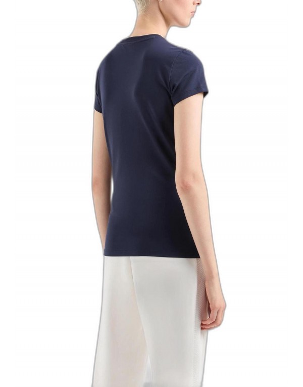 Brand: Armani Exchange Gender: Women Type: T-shirts Season: Spring/Summer PRODUCT DETAIL • Color: blue • Pattern: print • Fastening: slip on • Sleeves: short • Neckline: round neck COMPOSITION AND MATERIAL • Composition: -95% cotton -5% elastane • Washing: machine wash at 30°