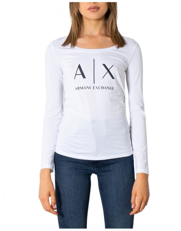 Brand: Armani Exchange Gender: Women Type: T-shirts Season: Fall/Winter PRODUCT DETAIL • Color: white • Sleeves: long • Neckline: round neck COMPOSITION AND MATERIAL • Composition: -100% cotton • Washing: machine wash at 30°