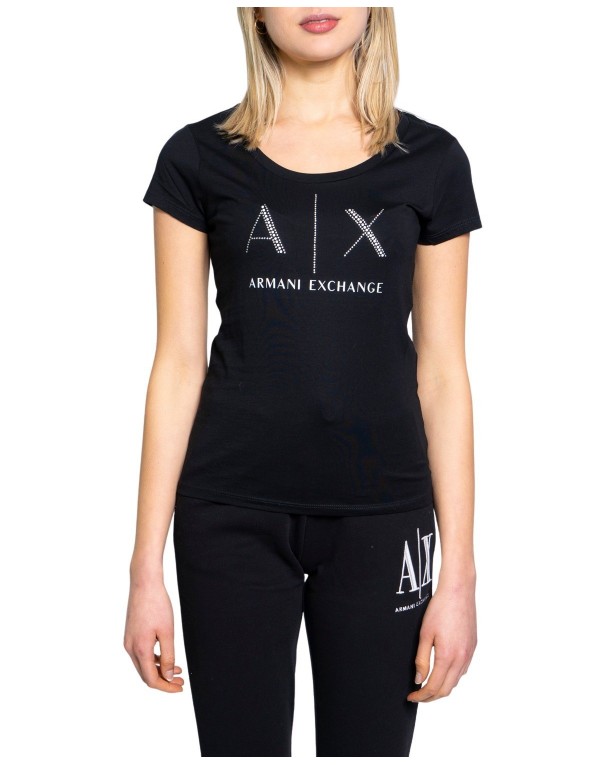 Brand: Armani Exchange Gender: Women Type: T-shirts Season: Spring/Summer PRODUCT DETAIL • Color: black • Pattern: print • Fastening: slip on • Sleeves: short • Neckline: round neck COMPOSITION AND MATERIAL • Composition: -100% cotton • Washing: machine wash at 30°