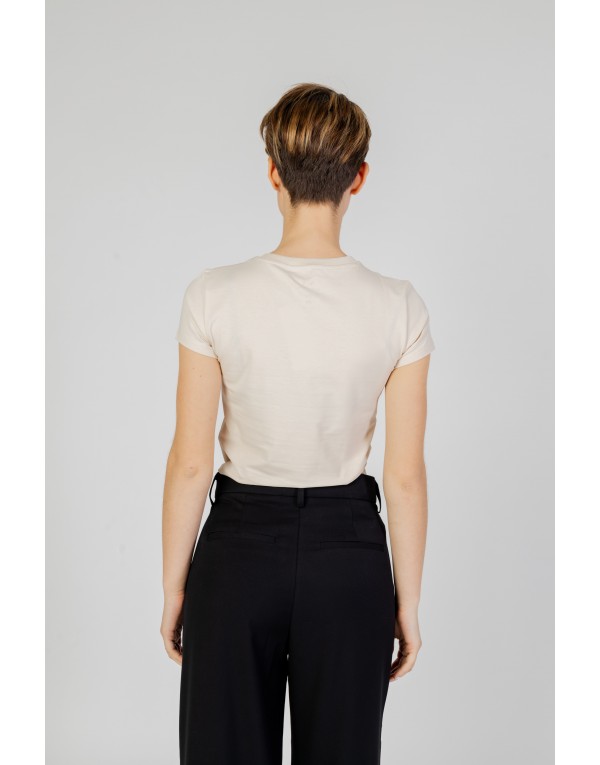 Brand: Armani Exchange Gender: Women Type: T-shirts Season: Spring/Summer PRODUCT DETAIL • Color: beige • Pattern: print • Fastening: slip on • Sleeves: short • Neckline: round neck COMPOSITION AND MATERIAL • Composition: -95% cotton -5% elastane • Washing: machine wash at 30°