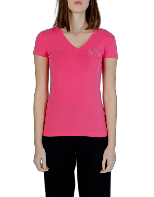 Brand: Armani Exchange Gender: Women Type: T-shirts Season: Spring/Summer PRODUCT DETAIL • Color: fuchsia • Pattern: print • Sleeves: short • Neckline: v-neck COMPOSITION AND MATERIAL • Composition: -95% cotton -5% elastane • Washing: machine wash at 30°