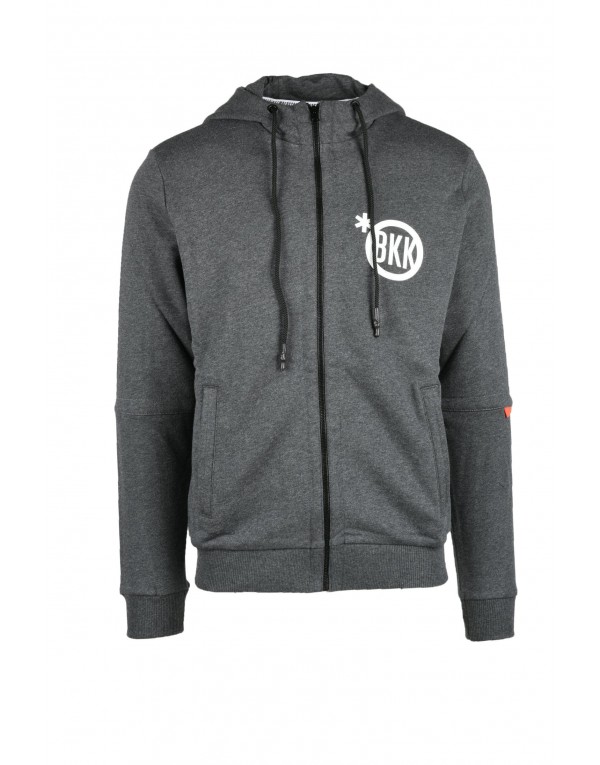 Brand: Bikkembergs Gender: Men Type: Sweatshirts Season: Fall/Winter PRODUCT DETAIL • Color: grey • Pattern: print • Fastening: with zip • Sleeves: long • Collar: hood • Pockets: front pockets COMPOSITION AND MATERIAL • Composition: -100% cotton