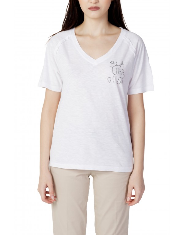 Brand: Blauer Gender: Women Type: T-shirts Season: Spring/Summer PRODUCT DETAIL • Color: white • Pattern: plain • Fastening: slip on • Sleeves: short • Neckline: v-neck COMPOSITION AND MATERIAL • Composition: -100% cotton • Washing: machine wash at 30°