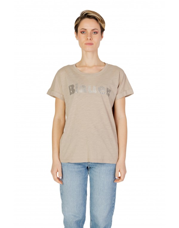 Brand: Blauer Gender: Women Type: T-shirts Season: Spring/Summer PRODUCT DETAIL • Color: beige • Pattern: print • Fastening: slip on • Sleeves: short • Neckline: round neck COMPOSITION AND MATERIAL • Composition: -100% cotton • Washing: machine wash at 30°