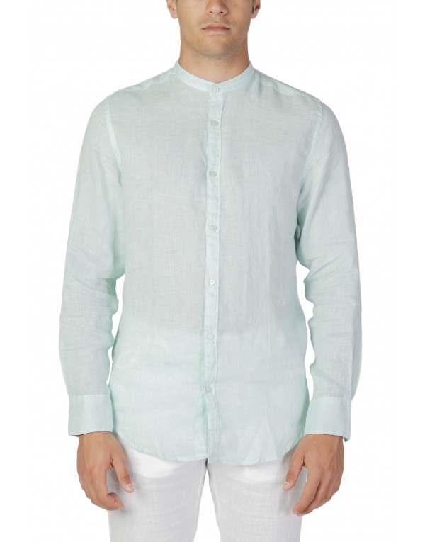 Brand: Borghese Gender: Men Type: Shirts Season: Spring/Summer PRODUCT DETAIL • Color: turquoise • Pattern: plain • Fastening: buttons • Sleeves: long • Collar: mandarin COMPOSITION AND MATERIAL • Composition: -100% linen
