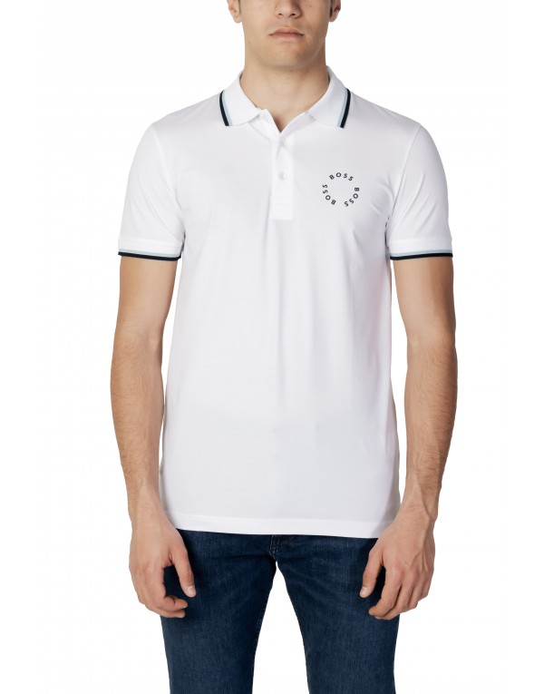 Brand: Boss Gender: Men Type: Polo Season: Spring/Summer PRODUCT DETAIL • Color: white • Pattern: plain • Fastening: buttons • Sleeves: short • Collar: polo COMPOSITION AND MATERIAL • Composition: -93% cotton -7% elastane • Washing: machine wash at 30°