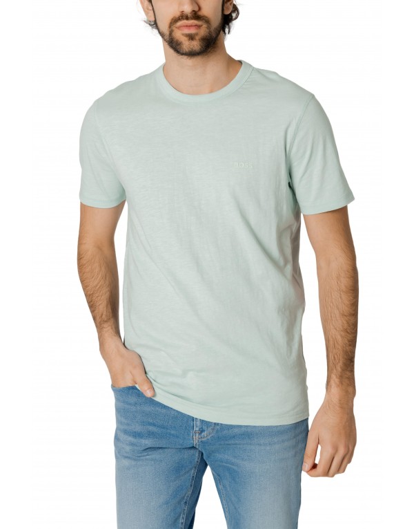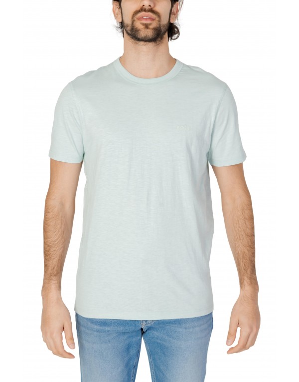 Brand: Boss Gender: Men Type: T-shirts Season: Spring/Summer PRODUCT DETAIL • Color: turquoise • Pattern: plain • Fastening: slip on • Sleeves: short • Neckline: round neck COMPOSITION AND MATERIAL • Composition: -100% cotton • Washing: machine wash at 30°