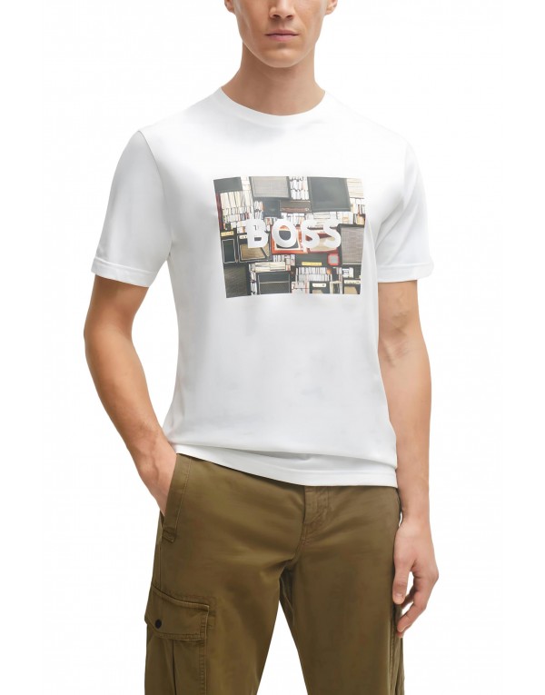 Brand: Boss Gender: Men Type: T-shirts Season: Spring/Summer PRODUCT DETAIL • Color: white • Pattern: print • Fastening: slip on • Sleeves: short • Neckline: round neck COMPOSITION AND MATERIAL • Composition: -100% cotton • Washing: machine wash at 30°