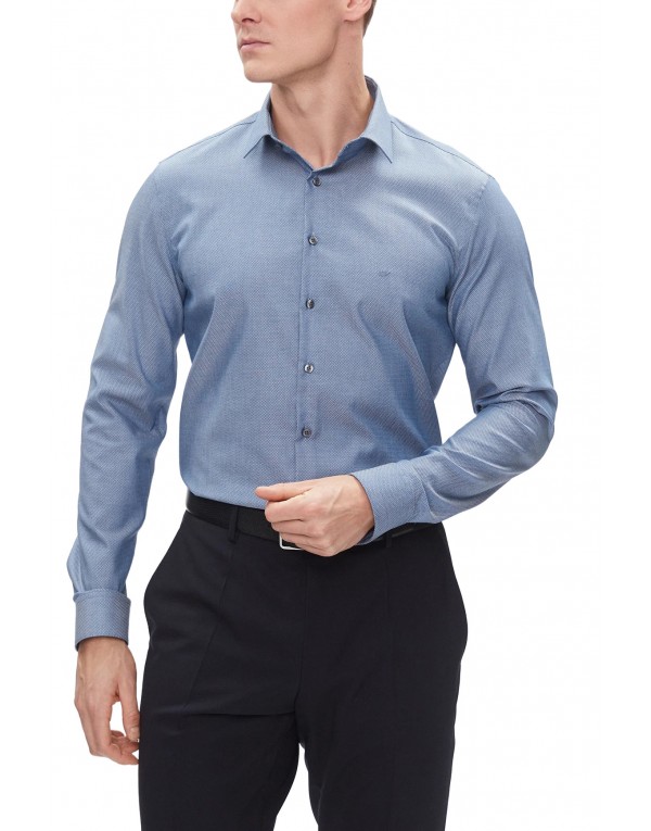 Brand: Calvin Klein Gender: Men Type: Shirts Season: Spring/Summer PRODUCT DETAIL • Color: blue • Fastening: buttons • Sleeves: long • Neckline: round neck • Collar: classic COMPOSITION AND MATERIAL • Composition: -98% cotton -2% elastane • Washing: machine wash at 30°