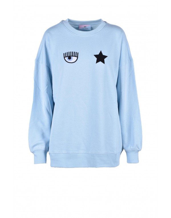 Brand: Chiara Ferragni Gender: Women Type: Sweatshirts Season: Spring/Summer PRODUCT DETAIL • Color: light blue • Pattern: print • Sleeves: long • Neckline: round neck COMPOSITION AND MATERIAL • Composition: -100% cotton • Washing: machine wash at 30°