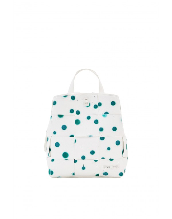 Brand: Desigual Gender: Women Type: Bags Season: Spring/Summer PRODUCT DETAIL • Color: white • Pattern: polka dot • Fastening: with zip • Size (cm): 29x25.5x10 • Details: -rucksack COMPOSITION AND MATERIAL • Composition: -100% polyurethane