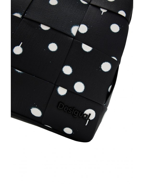 Brand: Desigual Gender: Women Type: Bags Season: Spring/Summer PRODUCT DETAIL • Color: black • Pattern: polka dot • Fastening: with zip • Size (cm): 29x25.5x10 • Details: -rucksack COMPOSITION AND MATERIAL • Composition: -100% polyurethane