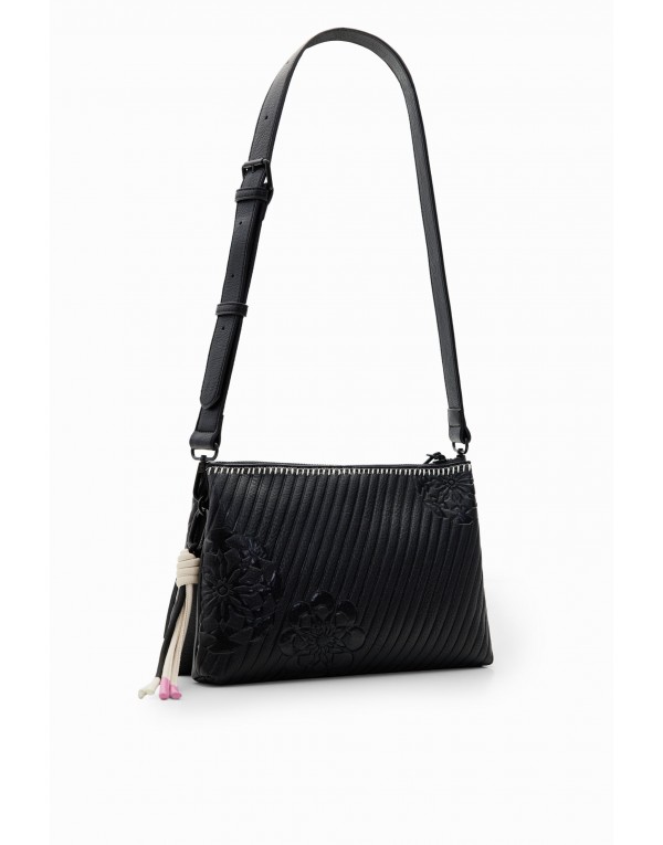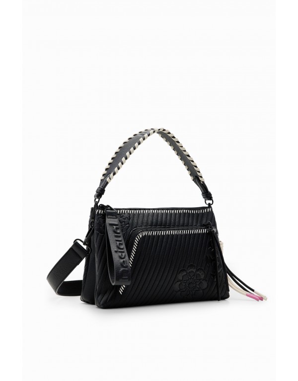 Brand: Desigual Gender: Women Type: Bags Season: Fall/Winter PRODUCT DETAIL • Color: black • Fastening: with zip • Size (cm): 17x29x12 COMPOSITION AND MATERIAL • Composition: -100% polyurethane