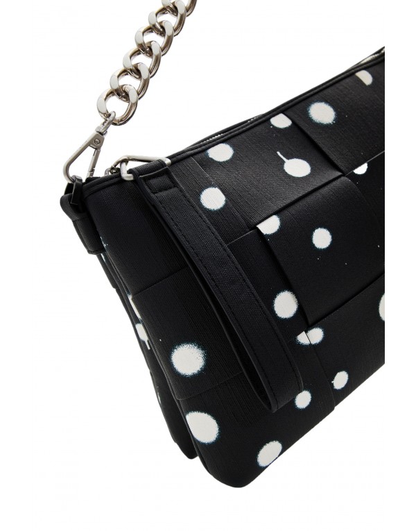 Brand: Desigual Gender: Women Type: Bags Season: Spring/Summer PRODUCT DETAIL • Color: black • Pattern: polka dot • Fastening: with zip • Size (cm): 20x31.4x7 COMPOSITION AND MATERIAL • Composition: -100% polyurethane
