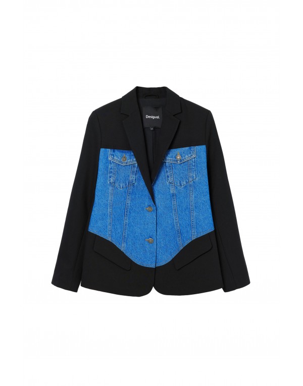 Brand: Desigual Gender: Women Type: Blazer Season: Spring/Summer PRODUCT DETAIL • Color: blue • Fastening: buttons • Pockets: front pockets COMPOSITION AND MATERIAL • Composition: -50% cotton -50% polyester • Washing: machine wash at 30°