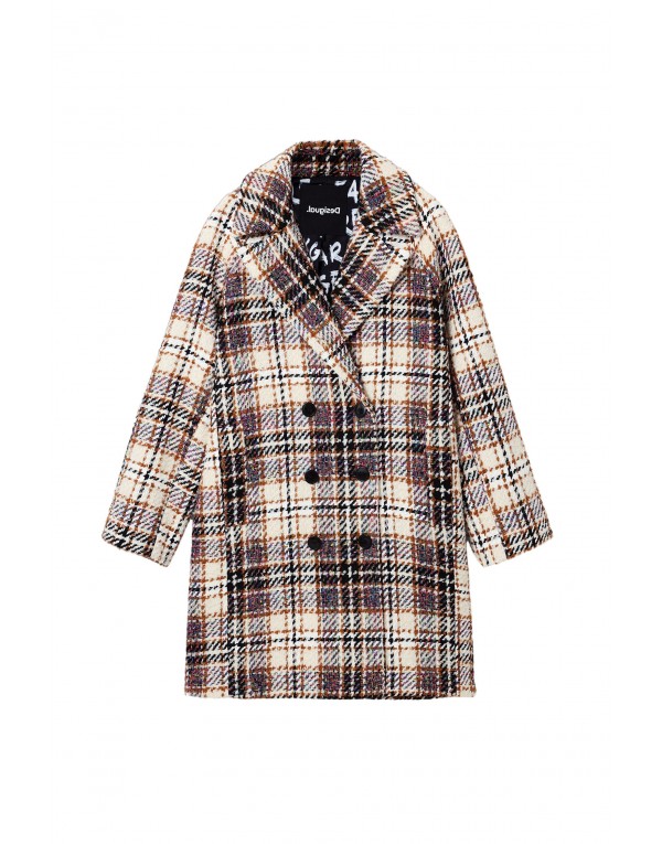 Brand: Desigual Gender: Women Type: Coats Season: Fall/Winter PRODUCT DETAIL • Color: brown • Pattern: checked • Fastening: buttons • Sleeves: long • Collar: lapel collar COMPOSITION AND MATERIAL • Composition: -12% wool -99% polyester