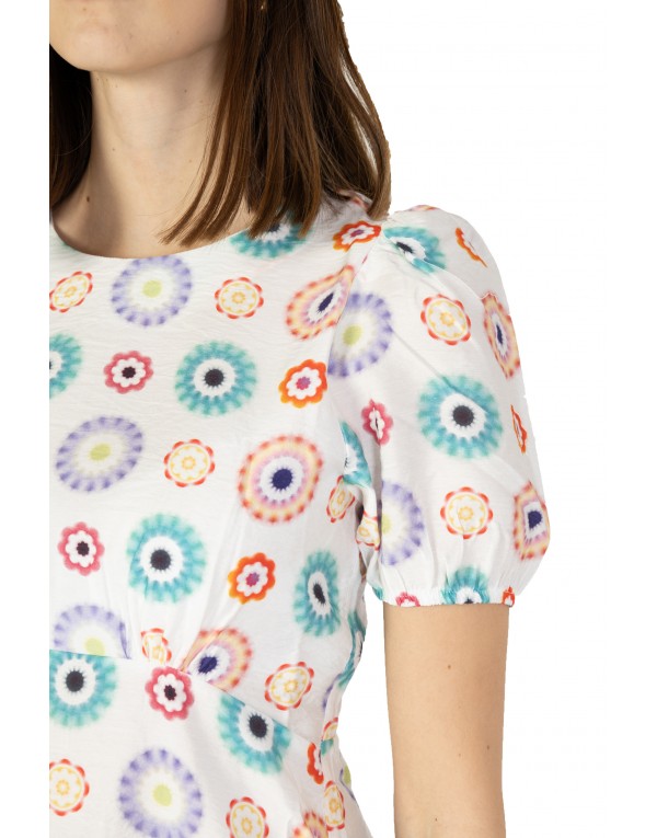 Brand: Desigual Gender: Women Type: Dresses Season: Spring/Summer PRODUCT DETAIL • Color: white • Pattern: print • Fastening: with zip • Sleeves: short • Neckline: round neck • Details: -short COMPOSITION AND MATERIAL • Composition: -15% polyamide -85% viscose