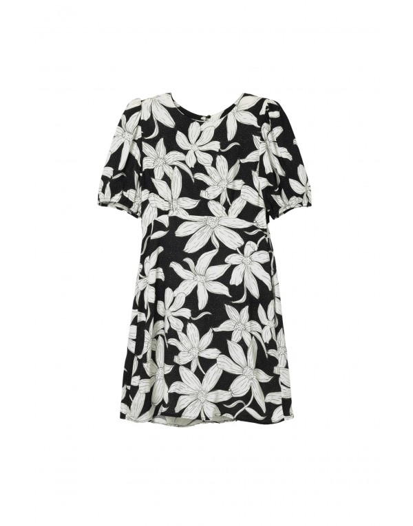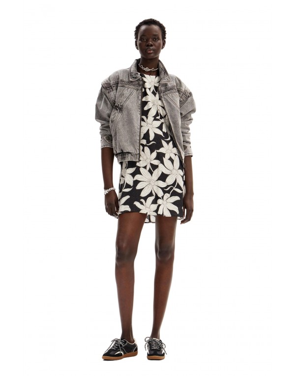 Brand: Desigual Gender: Women Type: Dresses Season: Spring/Summer PRODUCT DETAIL • Color: black • Pattern: floral • Fastening: with button • Sleeves: short • Neckline: round neck COMPOSITION AND MATERIAL • Composition: -100% viscose • Washing: machine wash at 30°