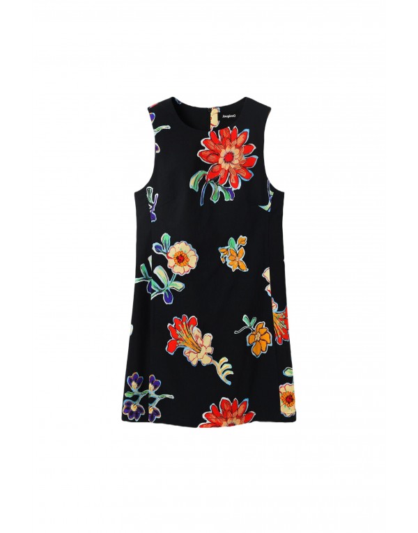 Brand: Desigual Gender: Women Type: Dresses Season: Spring/Summer PRODUCT DETAIL • Color: black • Pattern: floral • Fastening: with zip • Sleeves: sleeveless • Neckline: round neck COMPOSITION AND MATERIAL • Composition: -96% cotton -4% elastane • Washing: machine wash at 30°