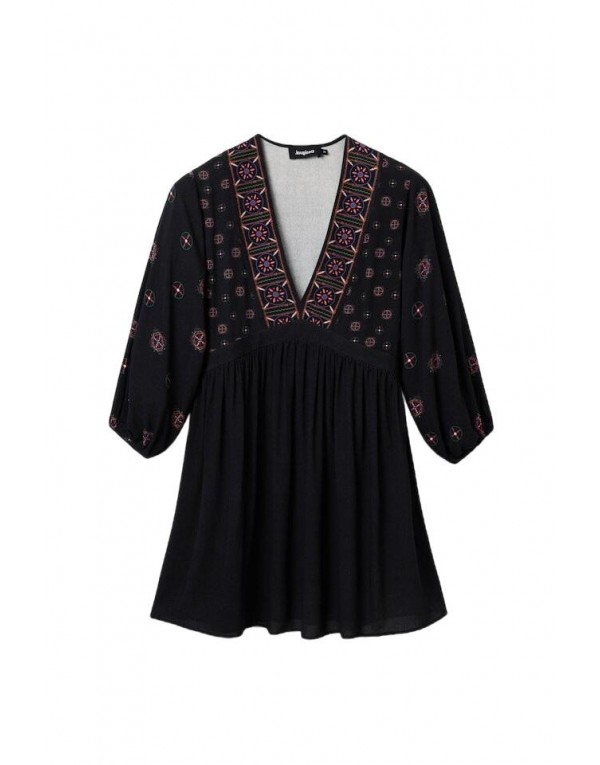 Brand: Desigual Gender: Women Type: Dresses Season: Spring/Summer PRODUCT DETAIL • Color: black • Pattern: plain • Sleeves: long • Neckline: v-neck COMPOSITION AND MATERIAL • Composition: -100% viscose • Washing: machine wash at 30°