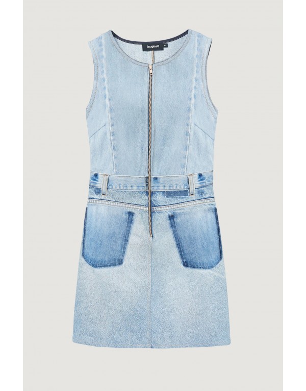 Brand: Desigual Gender: Women Type: Dresses Season: Spring/Summer PRODUCT DETAIL • Color: light blue • Fastening: with zip • Sleeves: sleeveless • Pockets: front pockets COMPOSITION AND MATERIAL • Composition: -100% cotton • Washing: machine wash at 30°