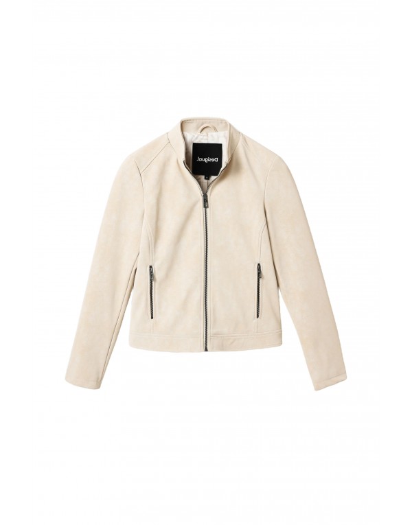 Brand: Desigual Gender: Women Type: Jackets Season: Spring/Summer PRODUCT DETAIL • Color: beige • Pattern: plain • Fastening: with zip • Sleeves: long • Collar: mandarin • Pockets: zip pockets COMPOSITION AND MATERIAL • Composition: -100% polyester -100% polyurethane